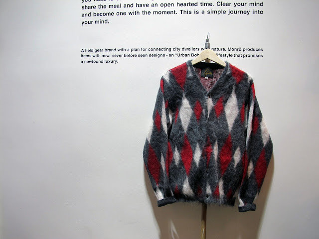 The FW12 edition of the Needles V-Cardigans are now available at the shop. The sweaters come in a variety of colors and patterns and are made from a mix of Mohair (from Angora goats), Alpaca (see picture) and wool. The V-Cardigans are warm and hairy, two adjectives I only want to hear together when describing sweaters.